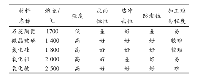 與石英陶瓷相比,氮化硅陶瓷不僅具有優(yōu)異的力學(xué)性能和很高的熱穩(wěn)定性,而且具有較低的介電常數(shù),其抗燒蝕性能也比熔融石英好,能經(jīng)受惡劣飛行條件下的熱振,因此氮化硅陶瓷也被稱為最有希望的天線罩材料。但到目前為止,有關(guān)氮化硅基陶瓷作為導(dǎo)彈天線罩還處于研究階段。