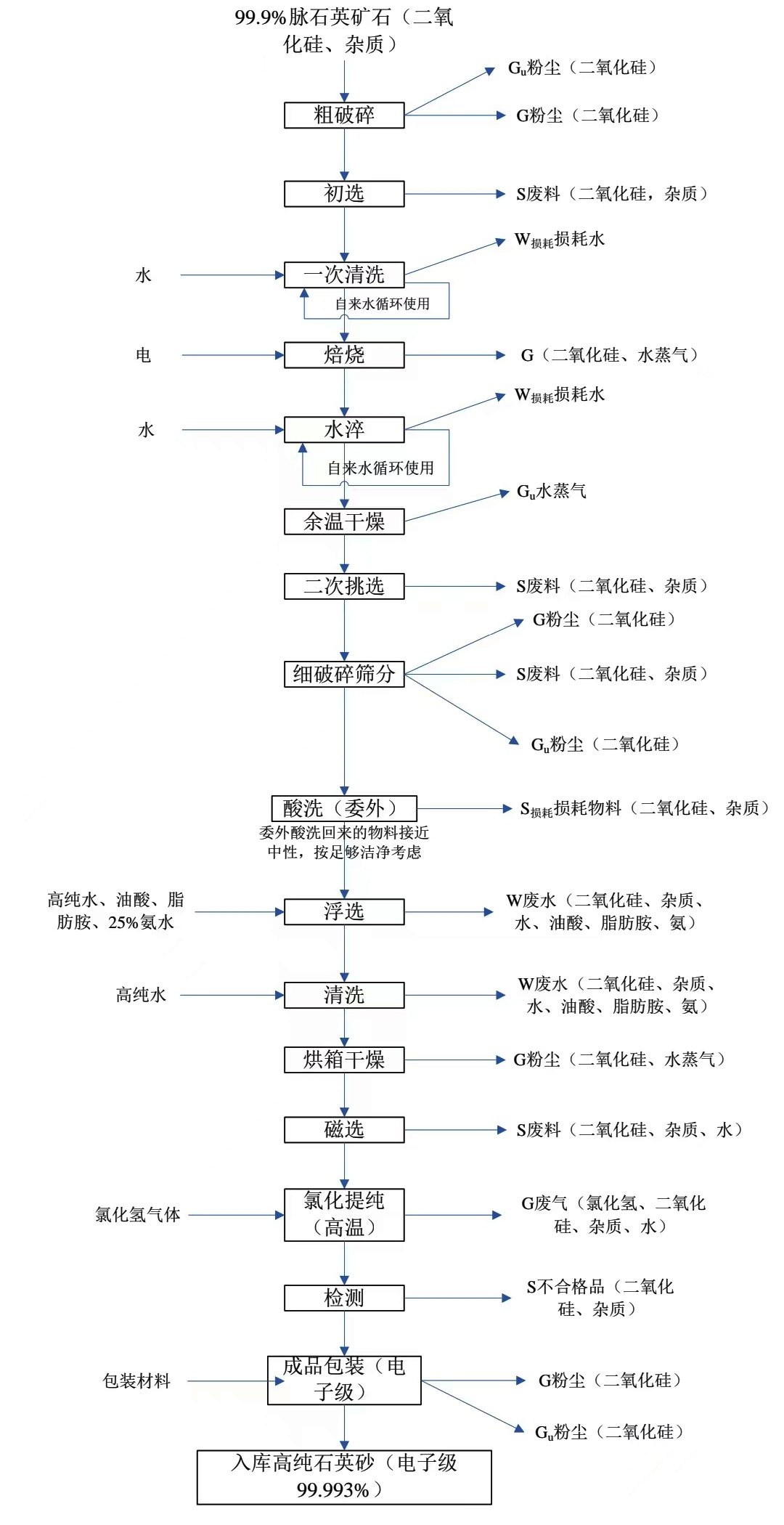 電子級高純石英砂生產(chǎn)工藝流程圖