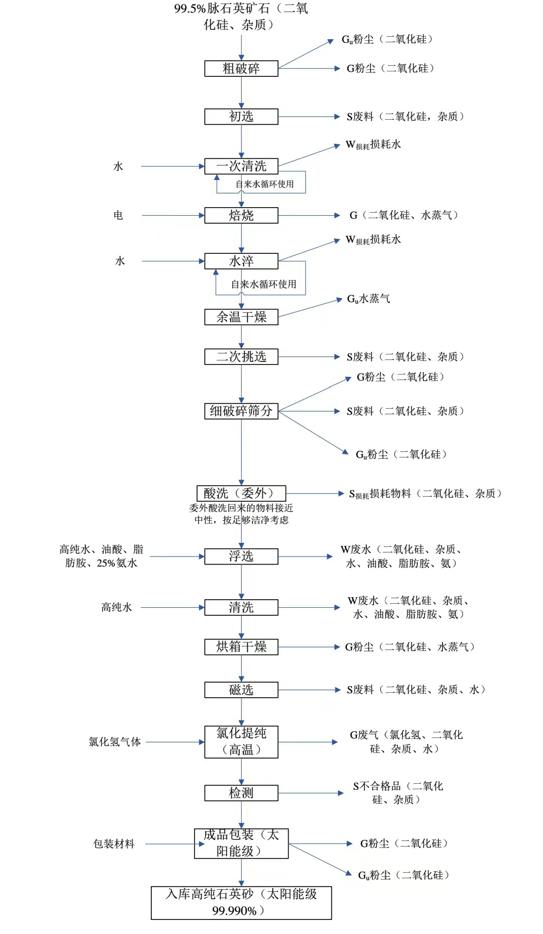 太陽能級高純石英砂生產(chǎn)工藝流程圖