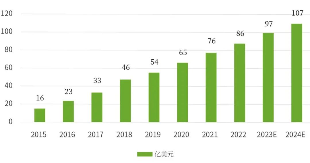2015-2024年全球藍寶石行業(yè)市場規(guī)模統(tǒng)計情況及預(yù)測,數(shù)據(jù)來源:LEDinside