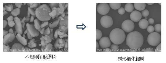 此外,球形的粉體因具有規(guī)則的形貌、更大的堆積密度、好的流動性等性質(zhì),可大大提高產(chǎn)品的應(yīng)能。因而,除了在導(dǎo)熱領(lǐng)域以外,球形Al2O3粉體在陶瓷、催化劑載體等多個領(lǐng)域被廣泛的應(yīng)用與研究。