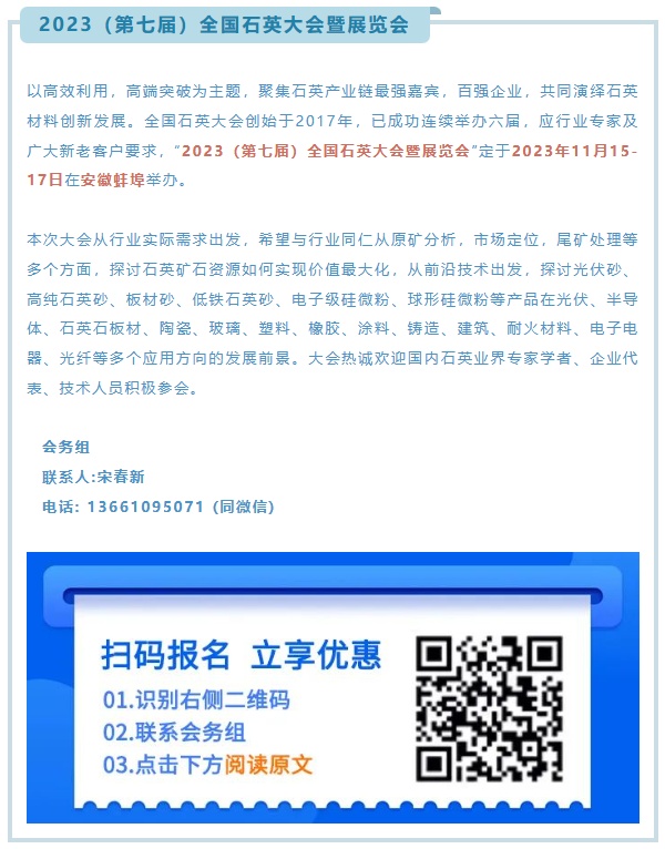[導讀]  江西核威環保科技與您相約安徽蚌埠!2023(第七屆)全國石英大會暨展覽會