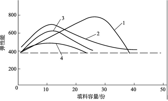 通常以“彈性能”(扯斷功)數值的大小和變化來衡量各種填料在橡膠中的補強效果。通常炭黑、氧化鋅在相當大的用量范圍內具有較好的補強效果,常稱它們為補強劑;陶土和碳酸鈣等補強效果相對較小,常稱它們為填充劑。