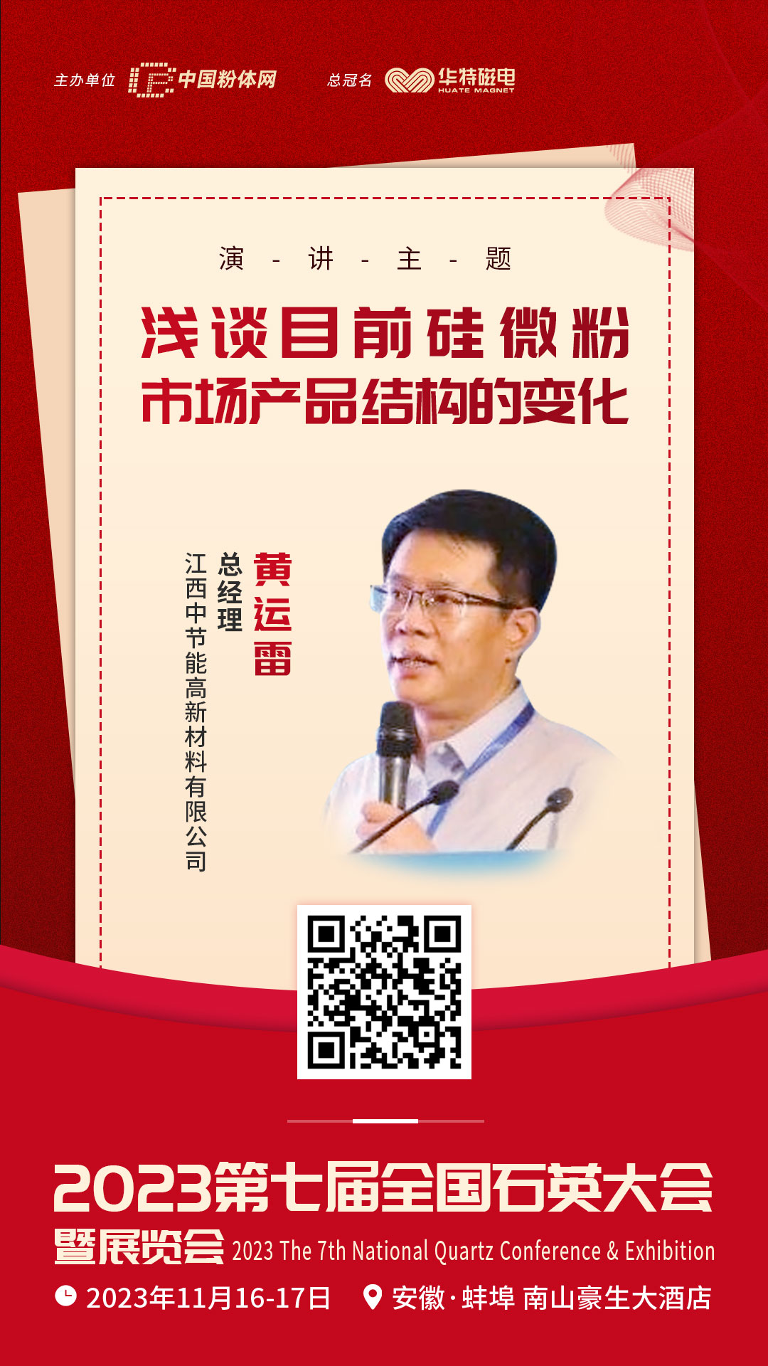 不同種類的硅微粉具體可應用在哪些領域?目前硅微粉市場的產品結構如何?2023年11月14日,由中國粉體網主辦的“2023(第七屆)全國石英大會暨展覽會”將在安徽蚌埠召開,江西中節能高新材料有限公司總經理黃運雷將做《淺談目前硅微粉市場產品結構的變化》的報告,屆時,黃總將對以上問題進行詳細講解。