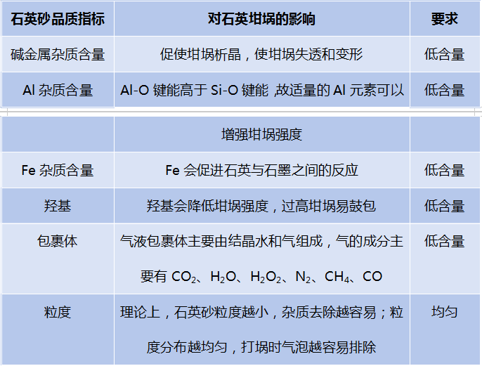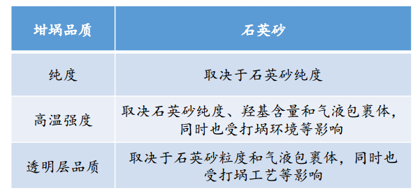 相較于普通石英砂,經過選礦提煉制備而成的高純石英砂具有更好的耐高溫性及熱穩定。作為石英坩堝的核心原料,石英砂純度是保證石英坩堝具備優良性能的核心指標。