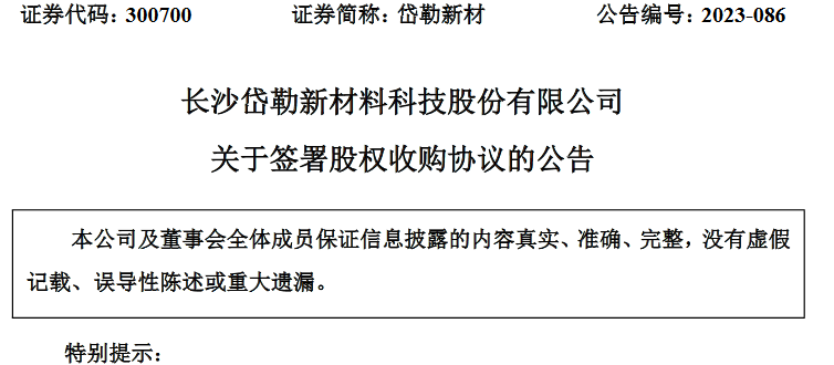 9月26日,岱勒新材發布公告,公司擬以現金方式購買湖南黎輝新材料科技有限公司70%股權,并簽署《股權收購協議》,交易作價2.45億元。本次交易完成后,公司將持有黎輝新材70%股權,黎輝新材將成為公司的控股子公司,納入公司合并報表范圍。公告顯示,黎輝新材成立于2014年,注冊資本5000萬元,是一家高新技術企業,主要從事石英坩堝用高純石英砂的研發、生產和銷售。
