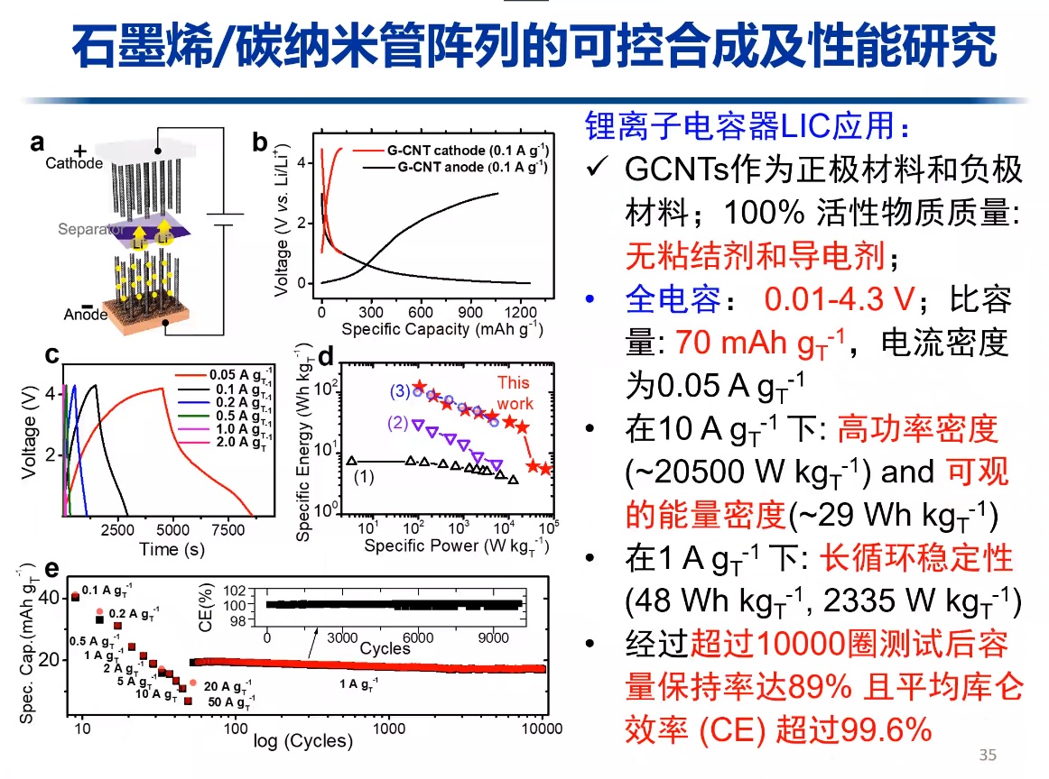首先,沙教授向我們介紹了三維碳納米結構的可控合成及性能研究的研究背景,具有優異物理、化學和力學性能的碳納米管和石墨烯在儲能領域極具應用前景,但由單一碳材料構成的無序復合結構的有效比表面積低、強度差等問題限制了其性能發揮。