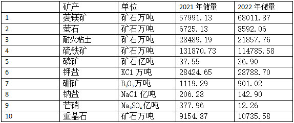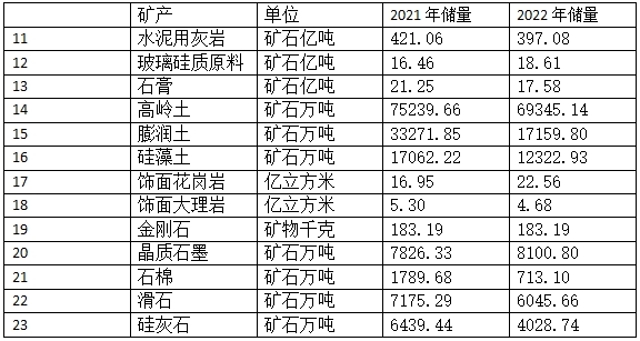 2021-2022年中國(guó)主要非金屬礦產(chǎn)儲(chǔ)量