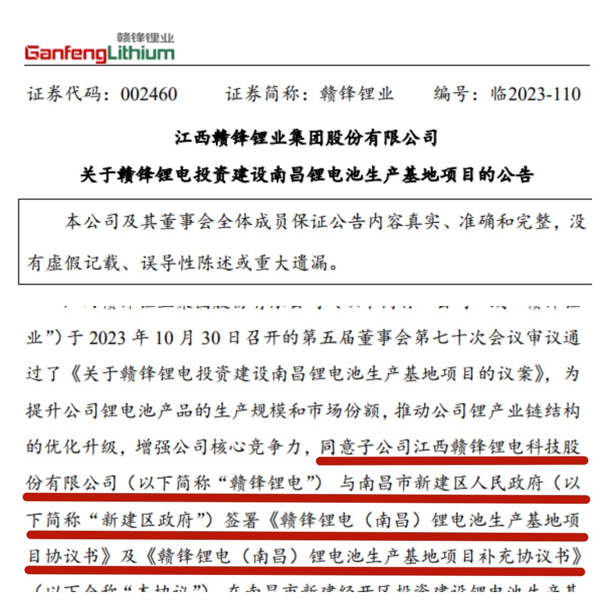 一期投資20億元!贛鋒鋰業擬在江西南昌投建鋰電池生產基地