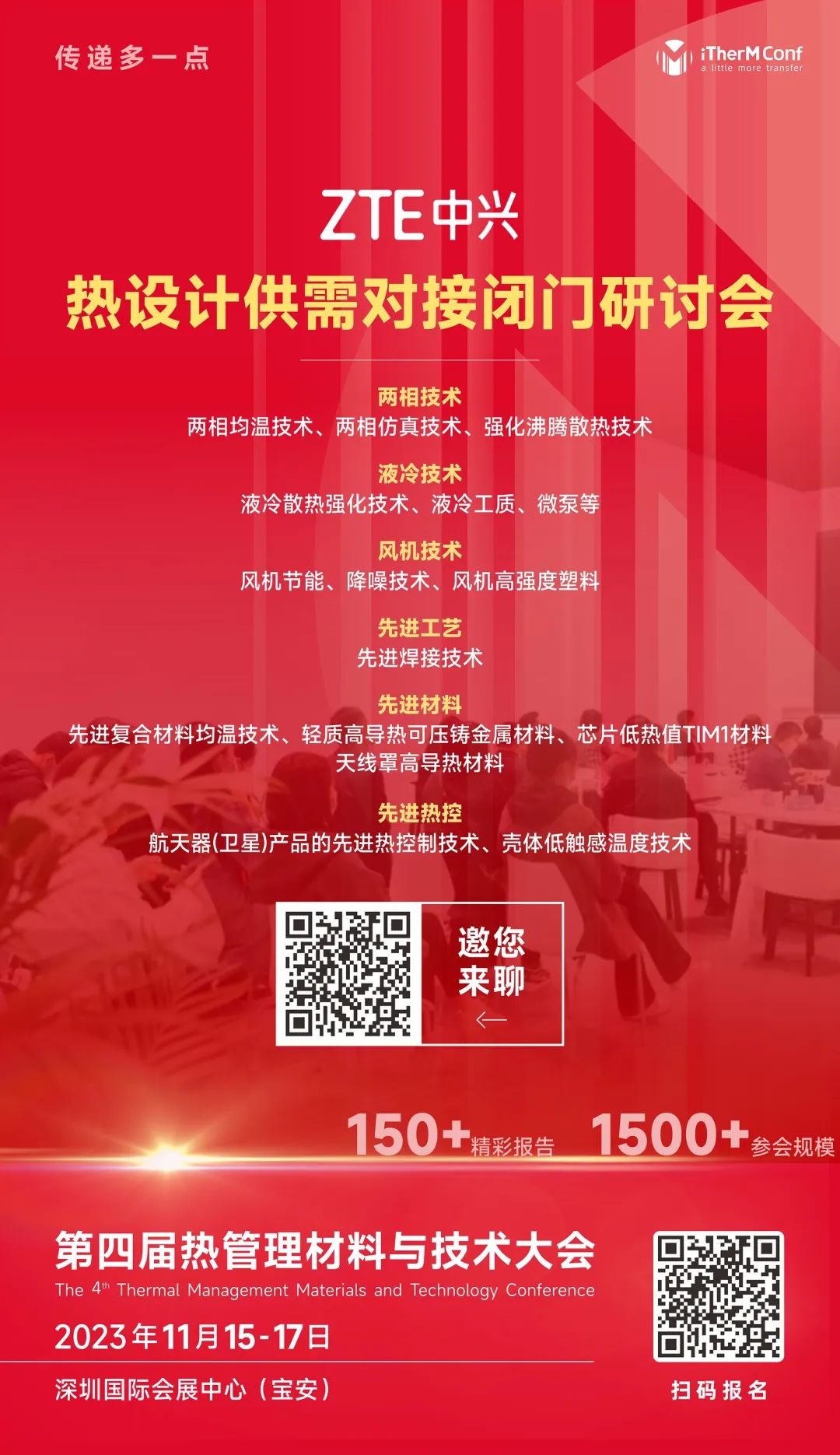 “第四屆熱管理材料與技術(shù)大會(huì)”聯(lián)合中興通訊設(shè)置供需對(duì)接會(huì),從中興通訊的應(yīng)用需求出發(fā),直面用戶單位針對(duì)新材料、新技術(shù)以及工程方案探討熱管理解決方案,期待您的蒞臨!