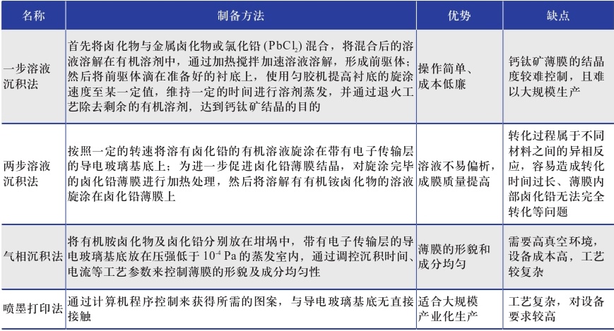 不同的鈣鈦礦薄膜制備方法及其優、缺點
