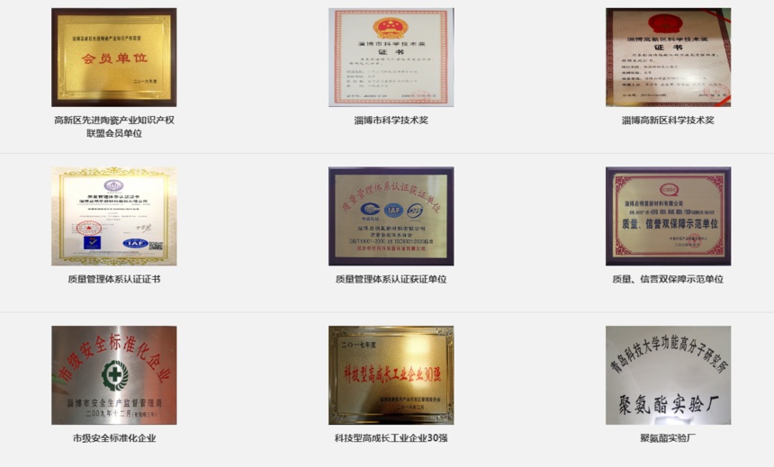公司擁有國家重點新產(chǎn)品1項;參與制定行業(yè)標(biāo)準(zhǔn)1項,團(tuán)體標(biāo)準(zhǔn)2項;擁有授權(quán)發(fā)明專利12件,實用新型專利4件;獲山東省科技進(jìn)步獎1項、淄博市高價值專利1件;淄博市科技進(jìn)步獎1項;淄博市重大科技成果獎1項;淄博高新區(qū)科學(xué)技術(shù)獎2項;發(fā)表SCI論文5篇。