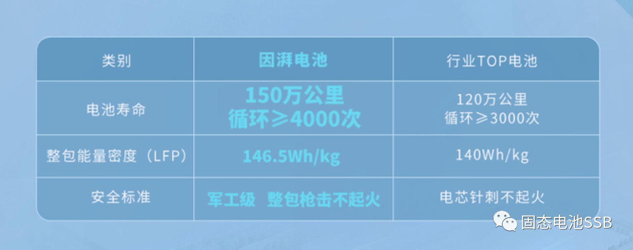 從官方公布的數據顯示,因湃電池在電池壽命方面可達150萬公里,循環次數超4000次,整包能量密146.5Wh/kg,可以做到軍工級安全。而行業Top電池的電池壽命為120萬公里,循環次數超3000次,整包能量密度140Wh/kg,安全標準為電芯針刺不起火。經過對比因湃電池全面超越行業Top電池。