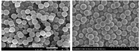 (1)、本產品為納米級,粒徑分布均勻,無團聚以及大顆粒,具有良好的分散性。(2)、本產品球形度好,球形率高,表面光滑無孔洞為致密球體,比表面積小。(3)、本產品嚴格控制原料和加工工藝,其純度高,金屬元素含量極低,無放射性元素。江蘇輝邁粉體科技有限公司研發并工業化的化學法制備球形二氧化硅的工藝,解決了傳統化學合成工藝制備球形硅微粉的(純度低、密度低、比表面大、吸油值高等)缺點, 公司的球形硅微粉實現了納米/亞微米化、高球形率(100%)、高純度,是電子通信功能填料的理想選擇,是目前球形硅微粉填料中最精密、等級最高的類型產品。主要應用于5G高頻高速覆銅板填料、IC載板以及封裝膠膜的填料、類載板和封裝電子膠填膠等。