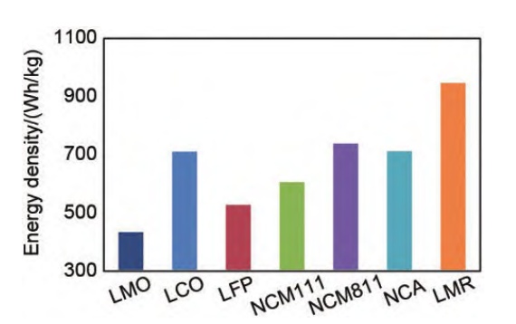 商用正極材料和富鋰錳基正極材料的能量密度對比