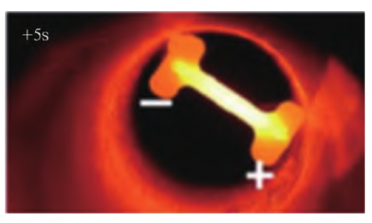 該機(jī)制在2013年首次被提出,這一成果重點(diǎn)集中在氧化物陶瓷上,對共價(jià)鍵陶瓷材料的研究較少。試樣在直流電場的作用下,由離子導(dǎo)體轉(zhuǎn)變?yōu)殡娮訉?dǎo)體隨著電化學(xué)還原從陽極向陰極進(jìn)行時(shí),電子密度增加試樣的電導(dǎo)率逐漸增大,達(dá)到一定程度時(shí)會(huì)釋放,發(fā)生閃光現(xiàn)象,同時(shí)氧化鋁陶瓷試樣的顏色也會(huì)由白色變成黑色。閃燒過程中電化學(xué)還原也會(huì)受到電極附近效應(yīng)的影響,陰極晶粒的生長與致密化是由過飽和的氧空位引起的,使陽離子遷移能降低。