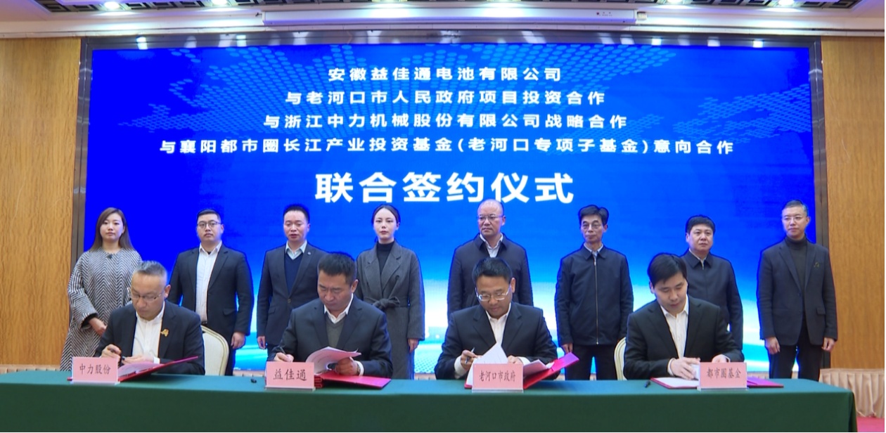 12月15日,安徽益佳通電池有限公司與湖北老河口市人民政府項目投資合作、與浙江中力機械股份有限公司戰略合作、與襄陽都市圈長江產業投資基金(老河口專項子基金)意向合作聯合簽約儀式在湖北襄陽南湖賓館舉行。四方共同簽訂《4GWh工業動力鋰電池電芯及PACK 生產線項目投資合作協議》《中力股份與安徽益佳通戰略合作協議》《益佳通B輪襄陽都市圈長江產業投資基金(老河口專項子基金)投資意向協議》。據悉,安徽益佳通老河口項目計劃投資20億元,建成投產后,為中力股份新能源叉車提供產業配套,填補老河口市在戰略性新興產業布局中新能源鋰電產業空白。