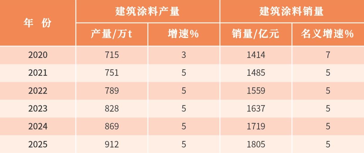 2020~2025年建筑涂料產(chǎn)銷量統(tǒng)計(jì)及預(yù)測(cè)
