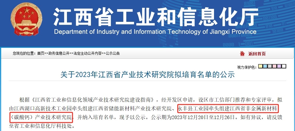中國粉體網(wǎng)訊 根據(jù)《江西省工業(yè)和信息化領(lǐng)域產(chǎn)業(yè)技術(shù)研究院建設(shè)指南》,經(jīng)開發(fā)區(qū)申請,設(shè)區(qū)市工信部門推薦和專家評審,擬由江西湖口高新技術(shù)工業(yè)園牽頭組建江西省儲能新材料產(chǎn)業(yè)技術(shù)研究院、永豐縣工業(yè)園牽頭組建江西省非金屬新材料(碳酸鈣)產(chǎn)業(yè)技術(shù)研究院,并納入培育名單,現(xiàn)予以公示。2023年12月20日至12月26日。如有異議,請反饋至省工業(yè)和信息化廳科技處。