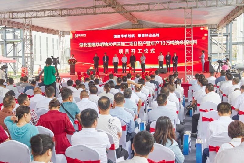 6月6日,湖北國鼎華明納米鈣深加工項目投產暨年產10萬噸納米新材料項目開工。湖北國鼎華明納米新材料產業園位于刊江街道梅府社區,占地419畝,總投資超22億元,將打造年產量百萬噸規模省級最大納米碳酸鈣示范產業園區,力爭五年之內形成產值規模100億元以上的產業園區。
