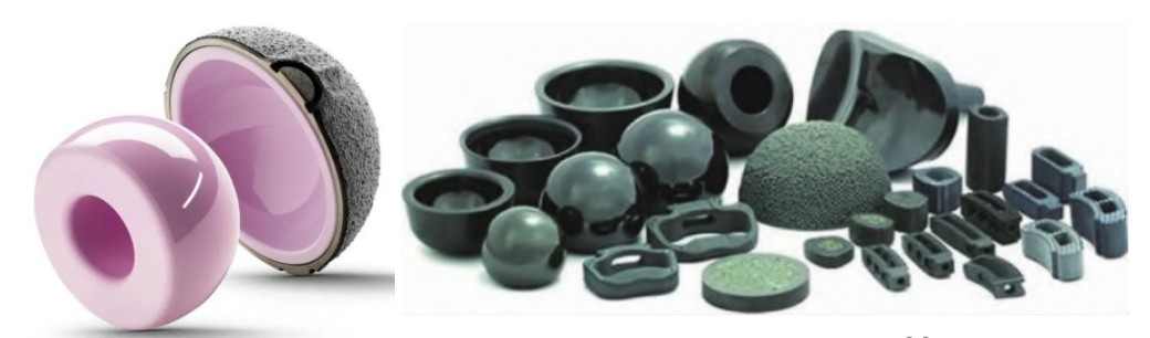 生物醫用陶瓷中如Al2O3、ZrO2、ZTA、Si3N4以及它們的復合陶瓷材料等,由于斷裂韌性、耐磨性優良,常應用于外科手術承重假體、牙科移植物、骨頭替代物等。其中,氮化硅的殺菌作用和自潤滑特性相結合,其做種植體,具有長期穩定的生物穩定性;氧化鋯因性能良好且美觀,但強度由于玻璃陶瓷,常用于牙科修復材料。