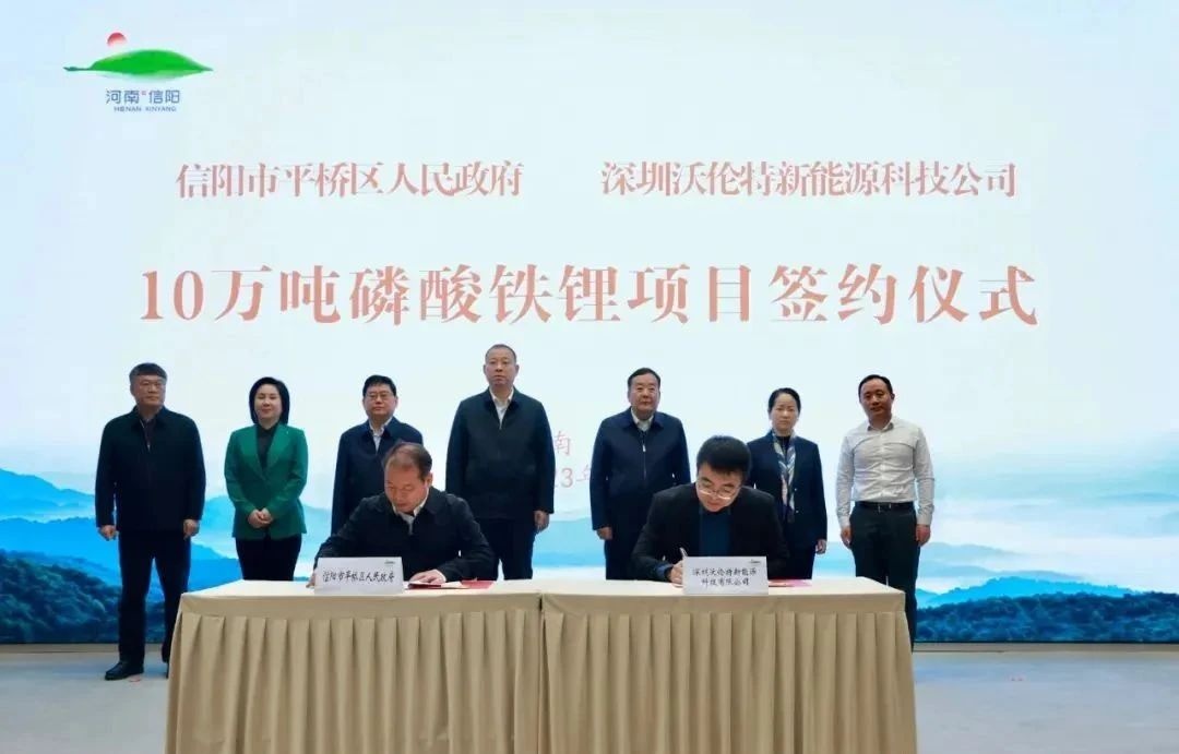 12月29日,河南省信陽市平橋區人民政府與深圳沃倫特新能源科技有限公司10萬噸磷酸鐵鋰項目簽約儀式舉行。據悉,該項目計劃總投資18億元,最終建設10萬噸磷酸鐵鋰燒結產線,項目建成后最終預計可實現產值80億元、利稅5億元。項目將分期完成,首期建設4萬噸,未來擴產至10萬噸規模。