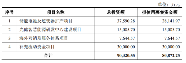 艾羅能源本次公開發行新股4,000.0000萬股,占發行后總股本25.00%,發行價格為55.66元/股。 本次募集資金總額為222,640.00萬元,扣除發行費用后本次發行募集資金凈額為198,807.45萬元。公司募集資金凈額比原計劃多117,935.2萬元。艾羅能源2023年12月28日披露的招股書顯示,公司擬募集資金80,872.25萬元,用于儲能電池及逆變器擴產項目、光儲智慧能源研發中心建設項目、海外營銷及服務體系項目、補充流動資金項目。