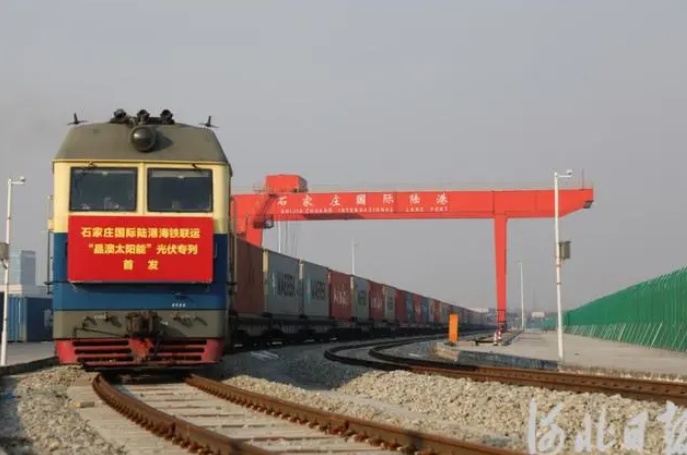這趟專列整列裝載有晶澳(邢臺(tái))太陽(yáng)能有限公司生產(chǎn)的光伏組件,貨值3300多萬(wàn)元。貨物運(yùn)抵天津港后,將快速駁運(yùn)至集裝箱船舶上,運(yùn)往葡萄牙、西班牙等國(guó)家。專列發(fā)出后中途將不再解編,不僅節(jié)約了運(yùn)輸時(shí)間,也有效降低了運(yùn)輸成本。這也是石家莊國(guó)際陸港服務(wù)特色產(chǎn)業(yè)集群,為晶澳(邢臺(tái))太陽(yáng)能有限公司量身打造的定制化海鐵聯(lián)運(yùn)專列。