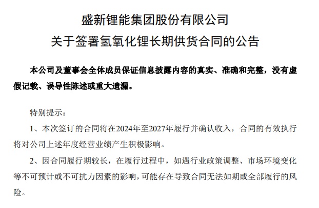 對于盛新鋰能來說,合同的簽訂是對公司鋰產品品質的充分認可,對雙方建立長期合作關系具有重要意義,有利于提升公司未來經營的穩定性和可持續性,增強市場競爭力。