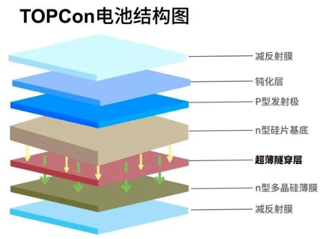 TOPCon太陽能電池即隧穿氧化層鈍化接觸太陽能電池(Tunnel Oxide Passivated Contactsolarcell),是一種使用超薄隧穿氧化層作為鈍化層結構的太陽能電池。