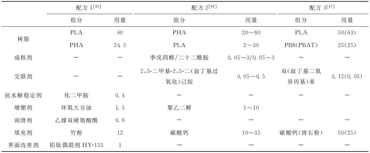 不同于吹塑和注塑需要較高的熔體流動性能,擠出料需要控制熔體流動速度在較小的范圍。較多的擠出料配方采用PLA、PHA等樹脂作為基礎樹脂。PLA是研究較為成熟的一種生物降解樹脂,常用于注塑、擠出等。PHA熔融黏度大,可作為擠出料的調粘樹脂使用,調控樹脂熔融指數。