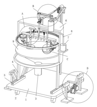 摘要:本實用新型通過電機、轉桿、第一皮帶輪,第二皮帶輪、轉輪和轉動機構,通過電機的旋轉可使得轉桿帶動第一皮帶輪進行轉動,同時通過電機的轉動帶動多組被動齒輪進行轉動,通過被動齒輪的轉動。