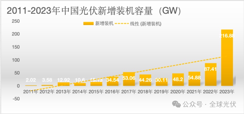 中國(guó)粉體網(wǎng)訊 2023年,光伏勢(shì)頭發(fā)展迅猛。據(jù)國(guó)家能源局發(fā)布的2023年全國(guó)電力工業(yè)統(tǒng)計(jì)數(shù)據(jù)顯示,2023年1月-12月,中國(guó)光伏累計(jì)裝機(jī)609.49GW,全年新增裝機(jī)光伏216.88GW。2023年新增裝機(jī)約等于前四年新增總和,令人嘆驚!