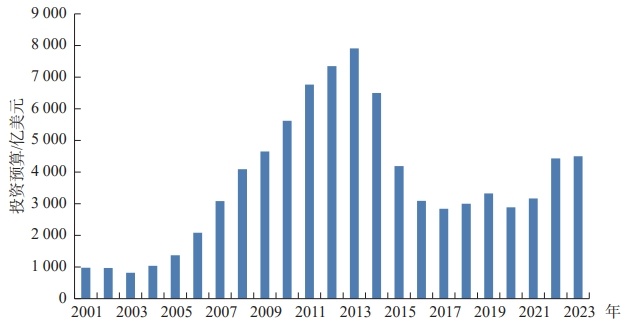2001—2023年世界礦業開發項目投資預算