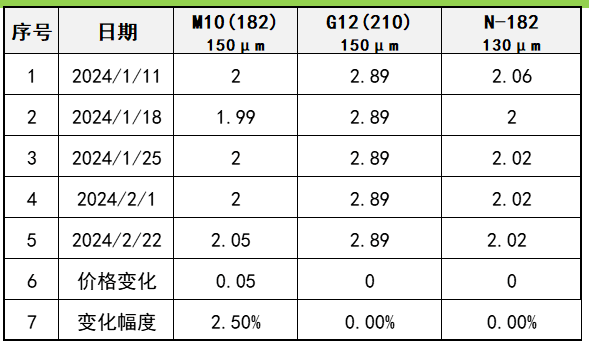 2024年2月22日,硅業分會發布硅片價格信息。根據最新價格信息顯示: