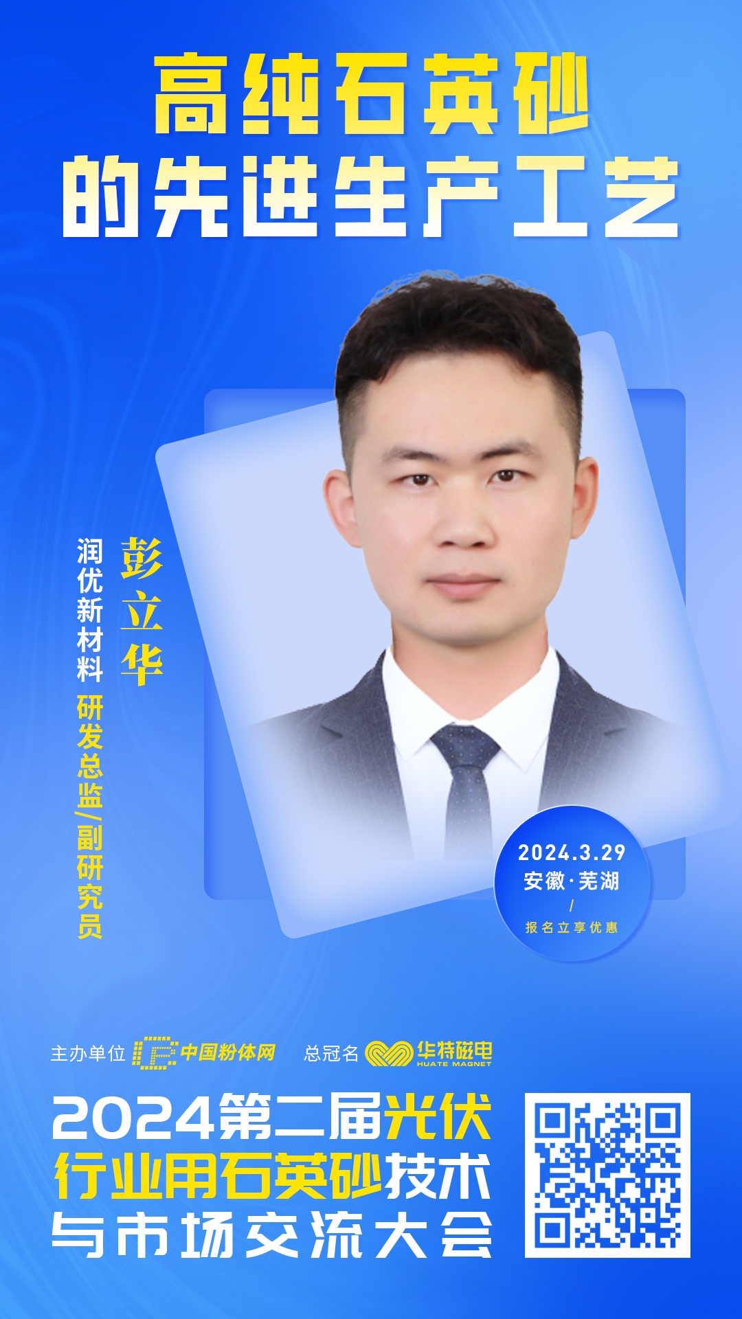 目前,潤優(yōu)新材料面向光伏領(lǐng)域的石英砂和石英制品產(chǎn)品性能與品質(zhì)獲得下游客戶高度認可,已實現(xiàn)批量出貨。未來將進一步開展半導體級石英材料和制品的研發(fā)和生產(chǎn),滿足客戶多產(chǎn)品類型需求。2024年3月29日,由中國粉體網(wǎng)主辦的“2024第二屆光伏行業(yè)用石英砂技術(shù)與市場交流大會”邀請到了潤優(yōu)新材料研發(fā)總監(jiān)/副研究員彭立華,屆時,他將在大會上帶來題《高純石英砂的先進生產(chǎn)工藝》的報告,想了解更多石英砂先進生產(chǎn)工藝?想與業(yè)內(nèi)優(yōu)秀企業(yè)面對面交流經(jīng)驗嗎?安徽蕪湖,我們不見不散!