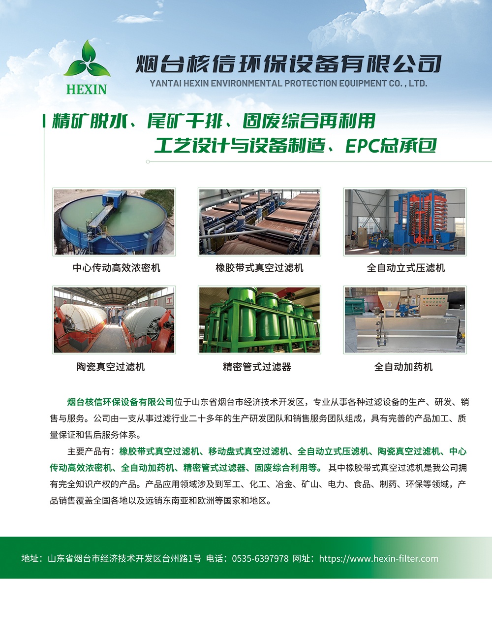 主要產品有;檢膠帶式真空過濾機、移動盤式真空過濾機、全自動立式壓濾機、陶資真空過淡機、中心傳動高效濃密機、全自動加藥機、精密管式過濾器、固康綜合利用等。 其中橡膠帶式真空過端機是我公司擁有完金知識產權的產品。產品應用領域涉及到軍工、化工、冶金、礦山、電力、食品、制藥、環保等領域,產品銷售覆蓋全國各地以及遠銷東南亞和歐洲等國家和地區。