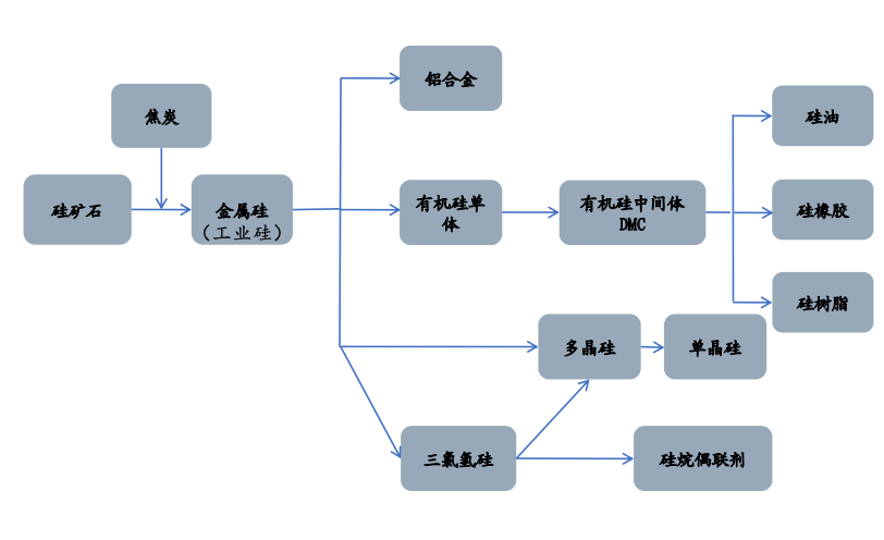 中國粉體網訊 工業硅是在礦熱爐高溫環境下,由碳質原料還原硅石熔煉而得的產品,是多晶硅、有機硅及多種合金生產用的重要原料。