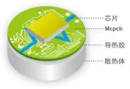 但是,隨著LED燈功率的進一步提高,金屬鋁散熱器的缺點慢慢地顯現出來了。因為金屬鋁的電導率很高,因此LED燈珠安裝在鋁散熱器上時,中間得加上一層高分子絕緣層(如下圖所示),雖然絕緣層不厚,可是高分子的熱導率實在太低(一般在1W/m•K以下),燈珠產生的熱很難通過絕緣層傳到鋁基板上,因此熱散不出去。這就使得金屬鋁LED燈的功率很難進一步提高。