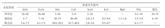 不同工藝赤泥主要化學組成與含量