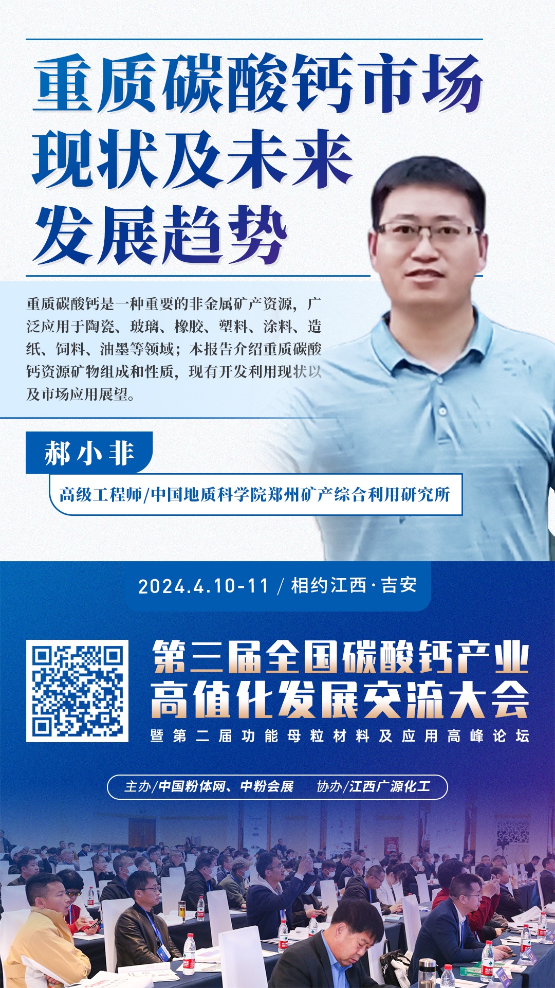 2024年4月10日~11日,第三屆全國碳酸鈣產業高值化發展交流大會將在江西·吉安舉行,屆時中國地質科學院鄭州礦產綜合利用研究所高級工程師郝小非將在大會上作《重質碳酸鈣市場現狀及未來發展趨勢》主題報告,為大家介紹重質碳酸鈣資源礦物組成和性質,現有開發利用現狀以及市場應用展望。
