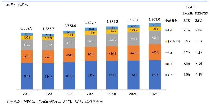 2019-2025年全球各地區(qū)涂料銷售總額及預(yù)測