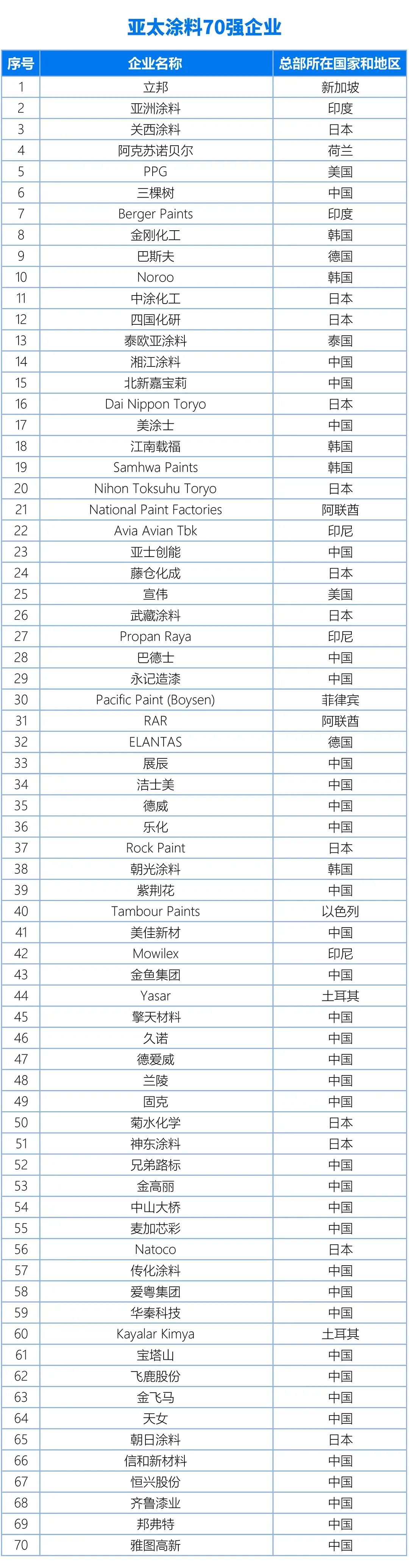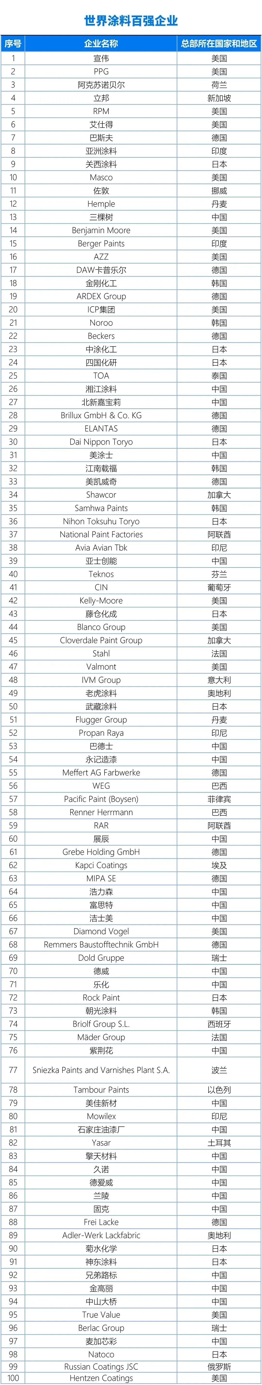 三張涂料企業(yè)榜單首發(fā) 全球涂料市場看中國