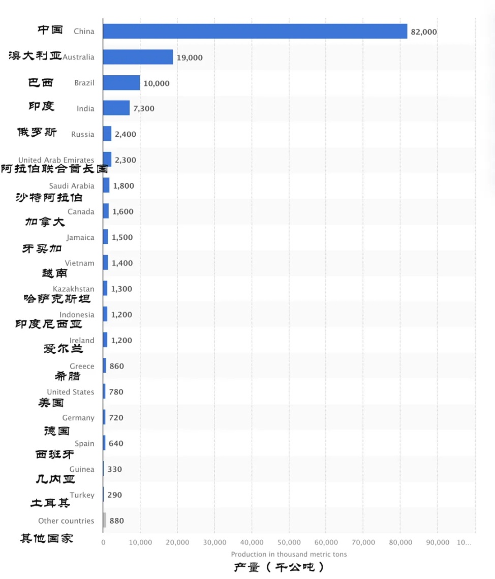 全球氧化鋁產量達1.419億噸,中國遙遙領先