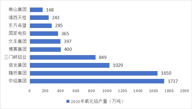 產量方面,中鋁集團以1737萬噸的產量位居榜首,緊隨其后的是魏橋集團和信發集團,產量分別為1650萬噸和1029萬噸。