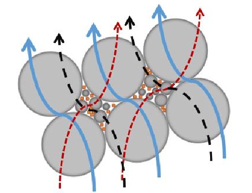 因此我們要求粒徑“不大不小”,但這很難達到理想要求。于是人們想到了一個好辦法——不同粒徑顆粒復配使用。選用不同尺寸的顆粒作為混合填料填充到基體材料中,大顆粒構成主要的導熱通路,將小顆粒填充到大顆粒間的空隙中以形成更為豐富的導熱網絡,從而實現復合材料導熱性能的提高。