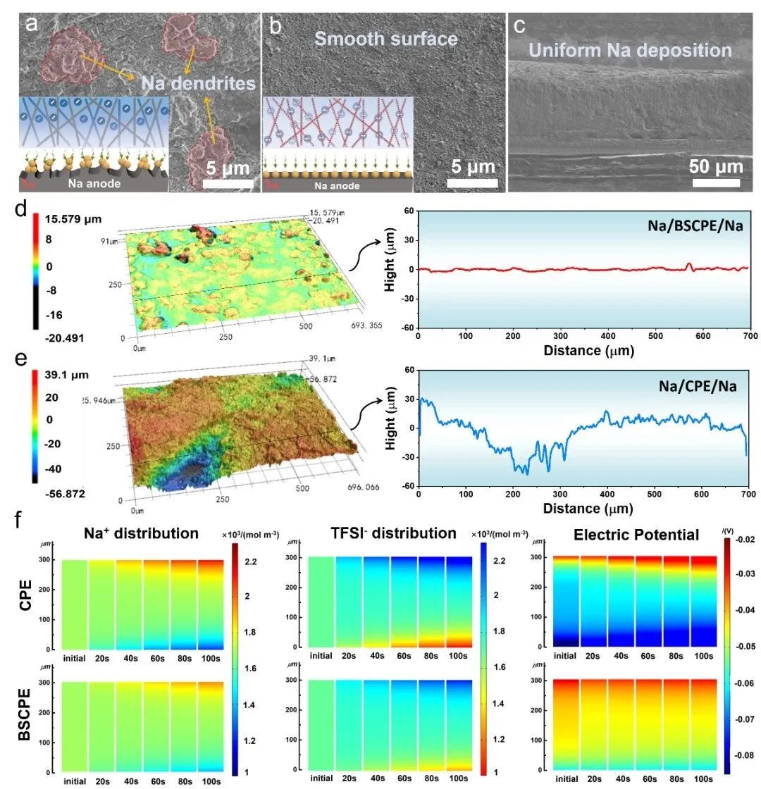固態聚合物電解質由于具有優異的可加工性和低成本,并且能夠和電極緊密接觸并有效緩沖電池循環過程中電極的體積變化,被認為是最有望率先實現全固態鈉金屬電池商業化的固態電解質體系。然而,單一組分的固態聚合物電解質面臨離子遷移動力學緩慢和鈉離子選擇性低引起的界面穩定性差等問題,嚴重限制了其實際應用。