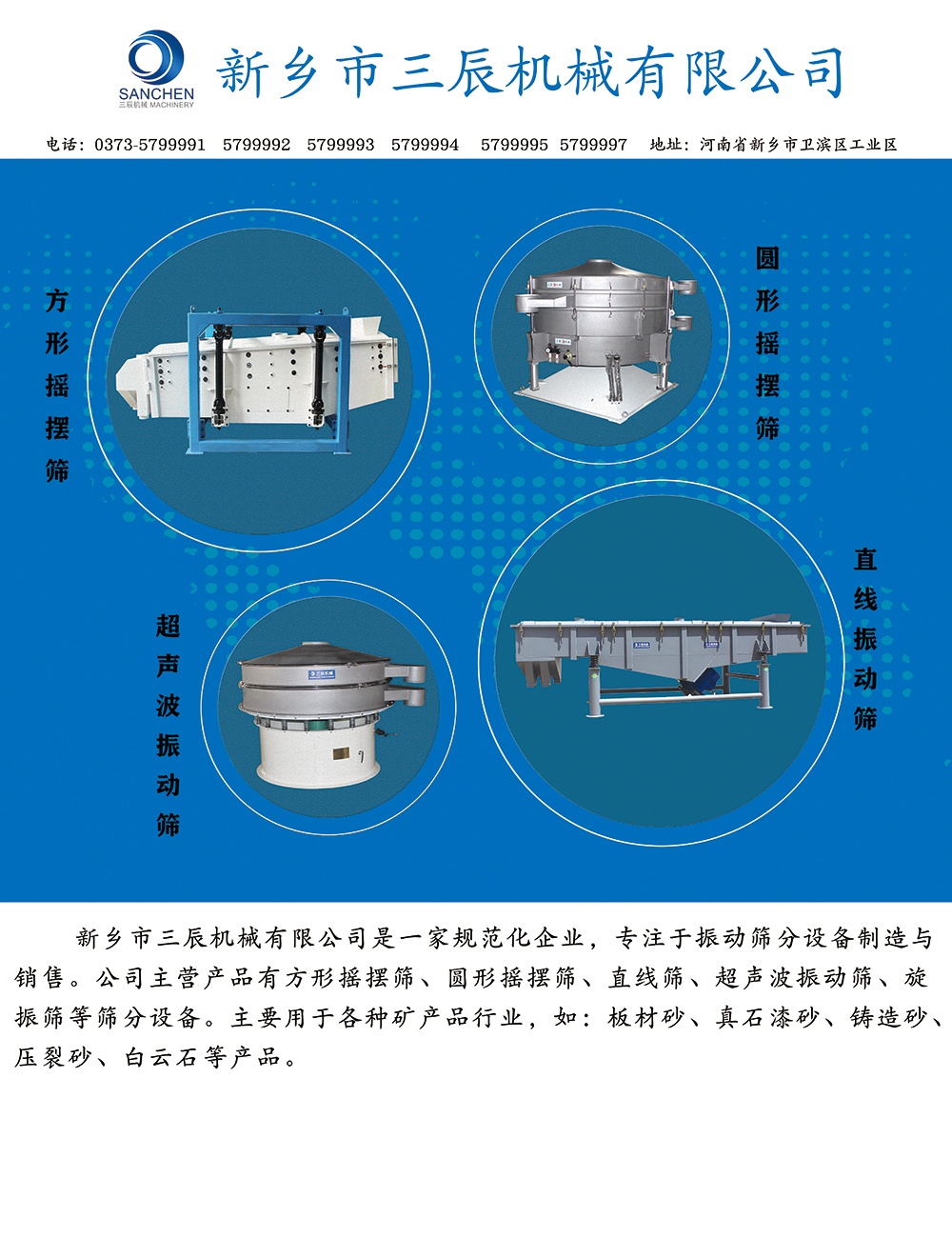 新鄉市三辰機械有限公司是一家規范化企業,專注于振動篩分設備制造與銷售。針對于每個行業篩分要求研發一系列行業專用振動篩,深受廣大客戶的青睞。