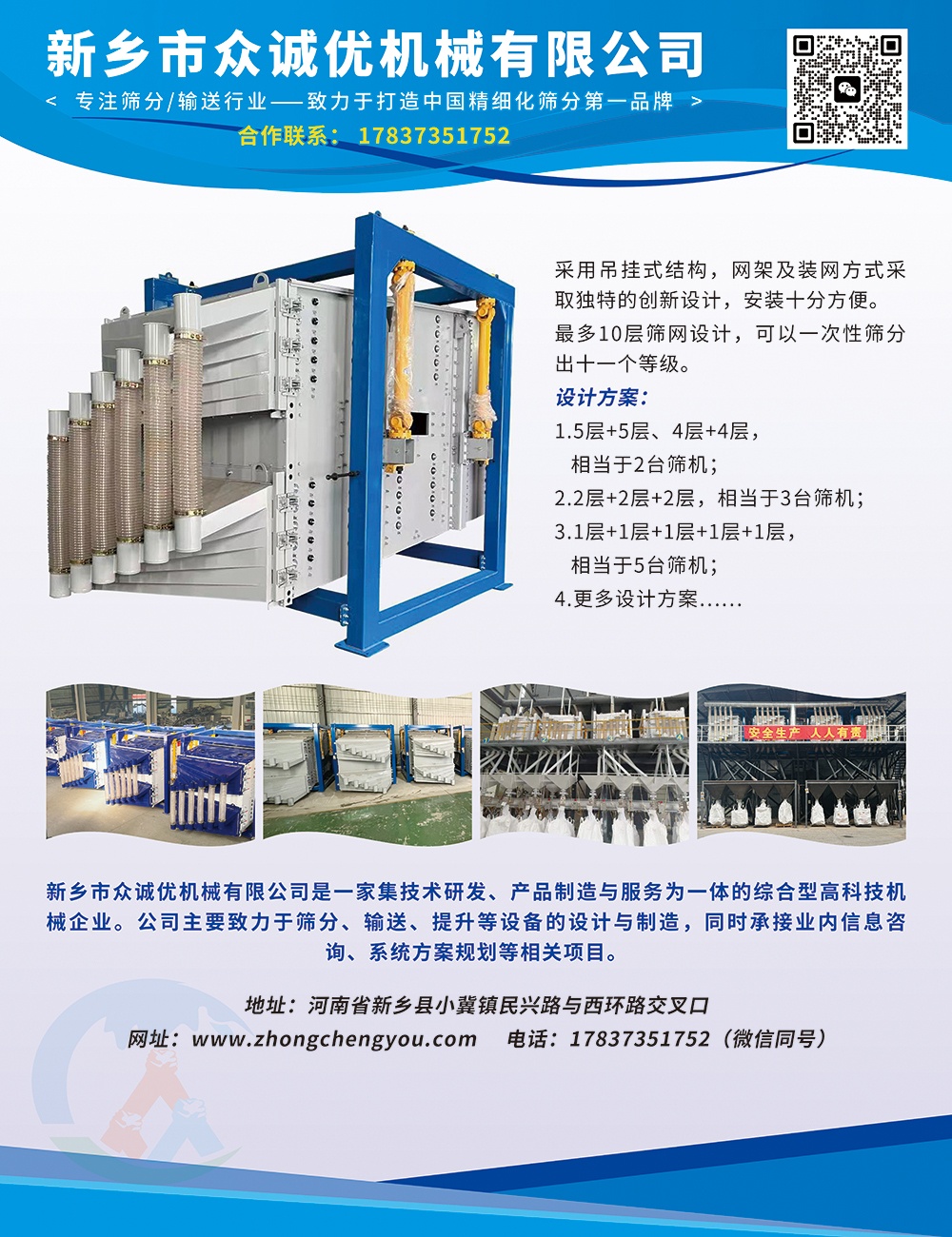 新鄉(xiāng)市眾誠優(yōu)機械有限公司是一家集技術(shù)研發(fā)、產(chǎn)品制造與服務(wù)為一體的綜合型高科技機械企業(yè)。公司主要致力于篩分、輸送、提升等設(shè)備的設(shè)計與制造,同時承接業(yè)內(nèi)信息咨詢、系統(tǒng)方案規(guī)劃等相關(guān)項目。