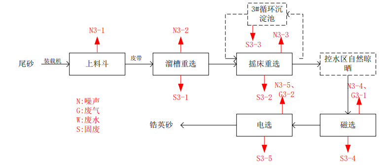 尾砂回收生產線工藝流程及產污環節圖